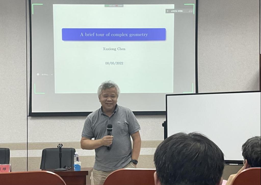 陈教授介绍了Maniflid和Complex Maniflod在数学中的概念,涉及拓扑学、Euclidean空间、统一化定理、Gauss Bonnet定理等,由浅入深地了解复几何研究中的基本内容,展示了当前复几何的最新发展,引导相关专业的师生参与到复几何的研究中来。报告最后,部分师生提问了有关微分方程、复几何方面的问题,陈教授耐心解答,对老师以及学生们的研究有了很大的启发。